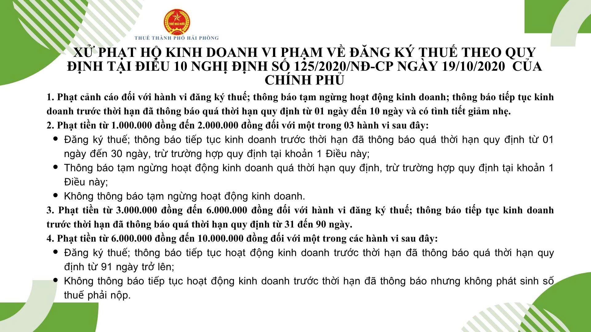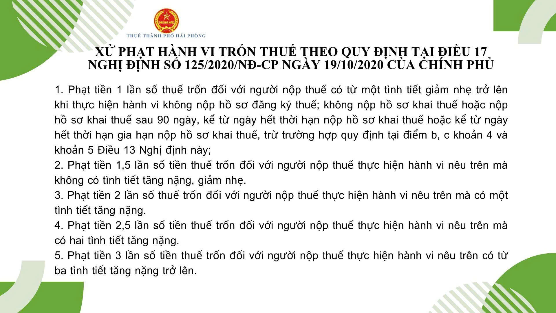 Các hình thức xử phạt vi phạm trong lĩnh vực thuế.