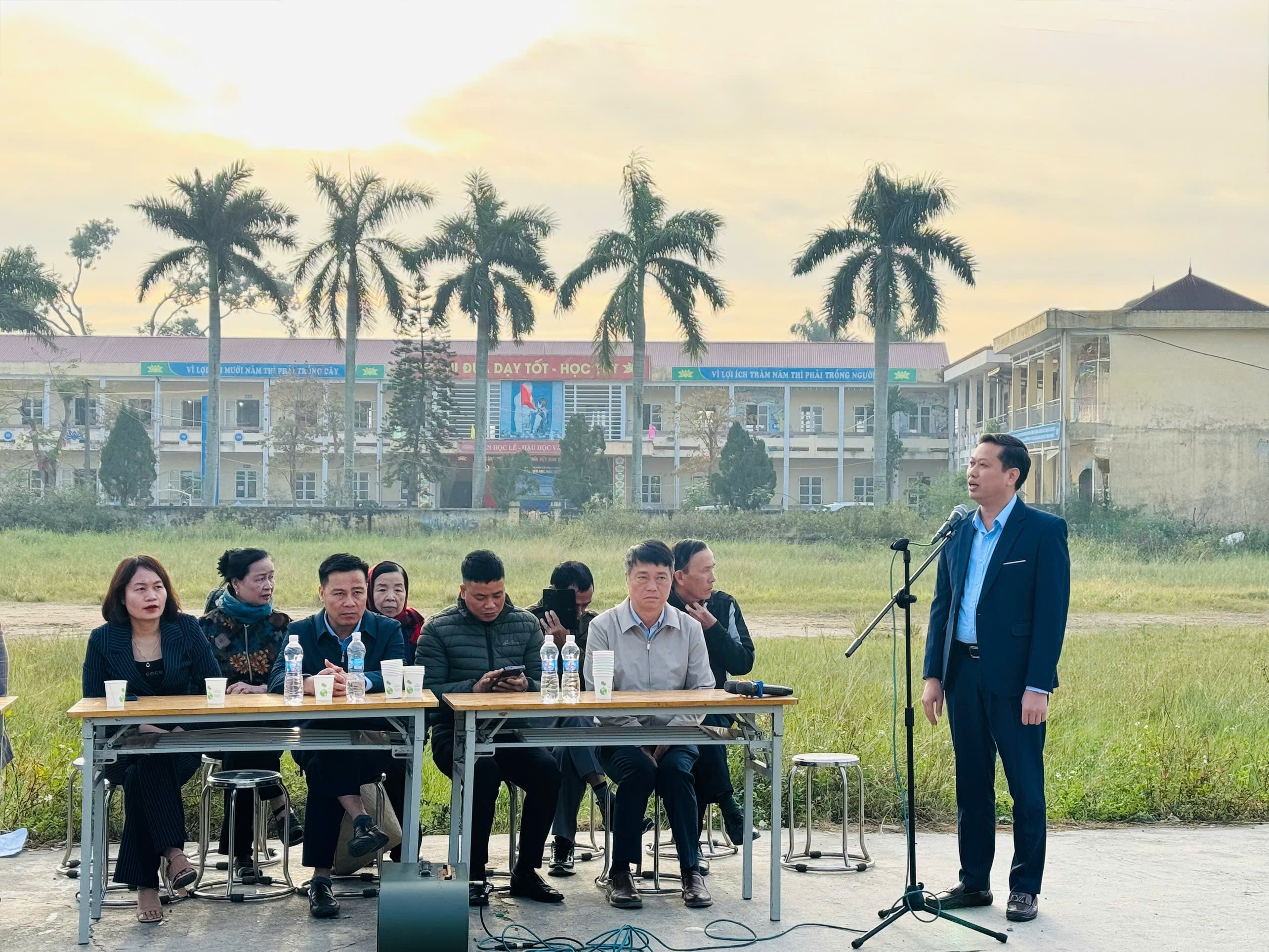 Đồng chí Nguyễn Thế Tài – Bí thư Đảng ủy, Chủ tịch HĐND xã phát biểu tại Lễ khởi công.