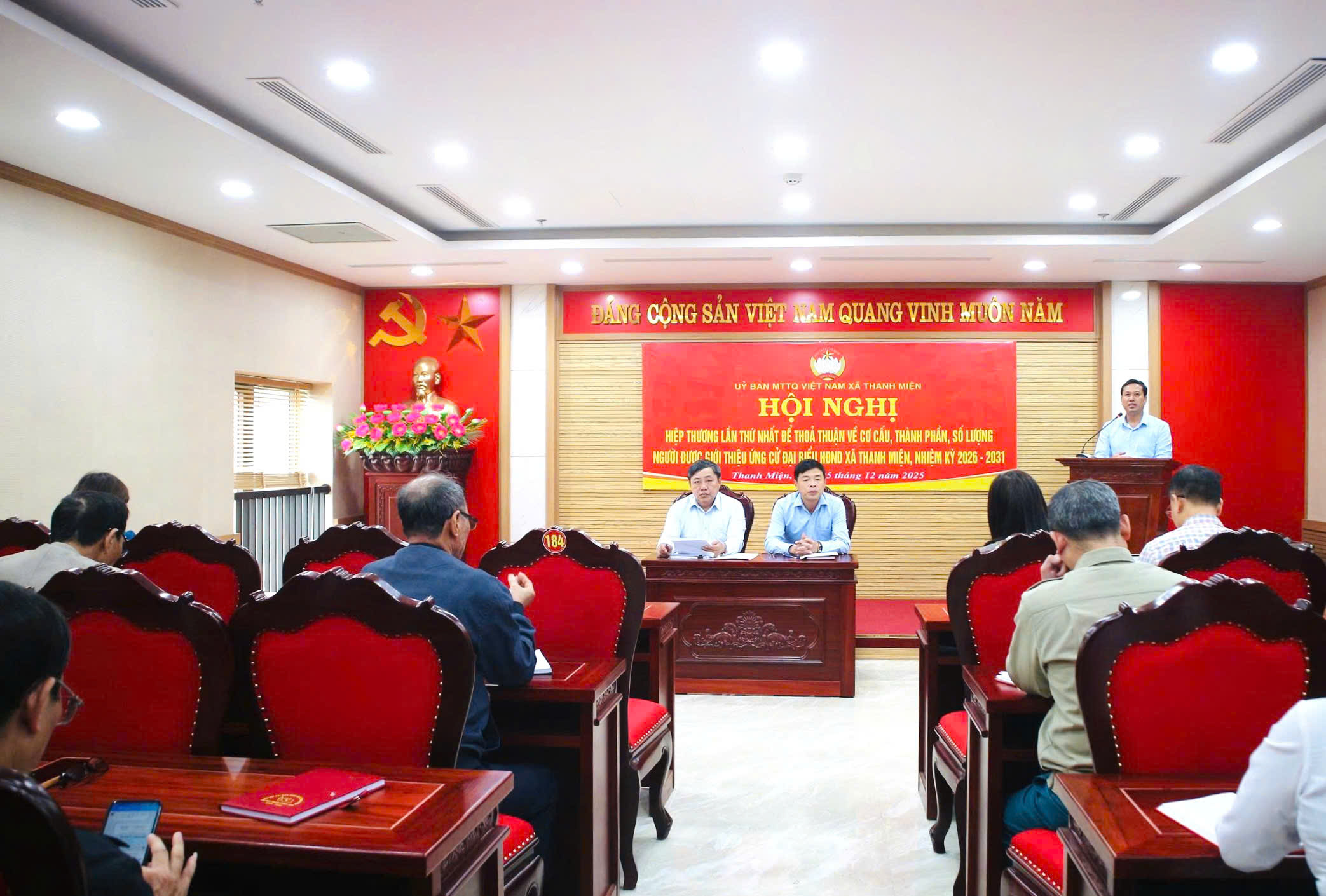 Chiều ngày 5/12/2025, Ban Thường trực Ủy ban Mặt trận Tổ quốc Việt Nam xã Thanh Miện đã tổ chức Hội nghị hiệp thương lần thứ Nhất nhằm thỏa thuận về cơ cấu, thành phần và số lượng người được giới thiệu ứng cử đại biểu Hội đồng nhân dân xã Thanh Miện nhiệm kỳ 2026 – 2031. Hội nghị do ông Đỗ Đức Khuê – Ủy viên Ban Thường vụ, Chủ tịch Ủy ban Mặt trận Tổ quốc Việt Nam xã và ông Vũ Quang Nhất – Phó Chủ tịch Ủy ban Mặt trận Tổ quốc Việt Nam xã chủ trì.