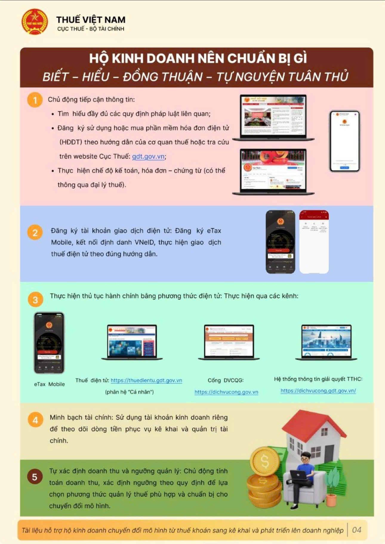 Hướng dẫn hộ kinh doanh lộ trình chuyển đổi sang nộp thuế kê khai và áp dụng hóa đơn điện tử, giúp minh bạch tài chính và phát triển bền vững.
