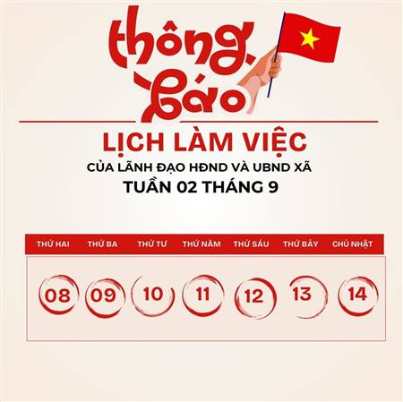 LỊCH LÀM VIỆC của Lãnh đạo HĐND và UBND xã tuần 2 tháng 9 (từ ngày 08/9/2025 đến ngày 14/9/2025)