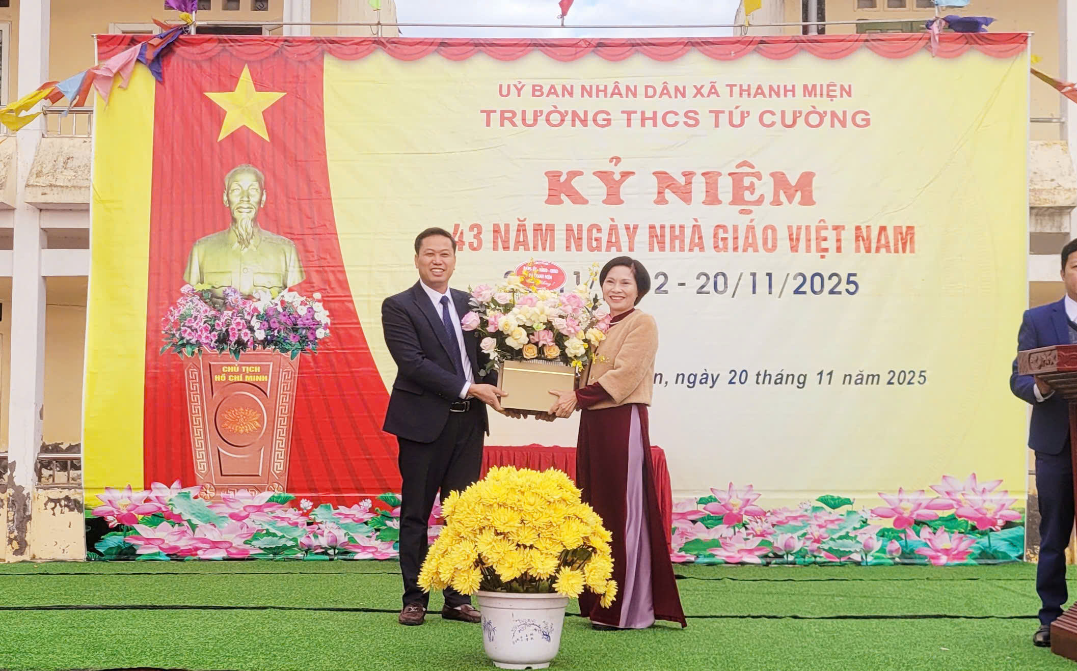 Nhân kỷ niệm 43 năm Ngày Nhà giáo Việt Nam 20/11, sáng ngày 20/11/2025, Đảng ủy – HĐND – UBND – UBMTTQ Việt Nam xã Thanh Miện đã tổ chức các đoàn công tác đến thăm hỏi, tặng hoa và chúc mừng đội ngũ cán bộ, giáo viên tại các nhà trường trên địa bàn xã.