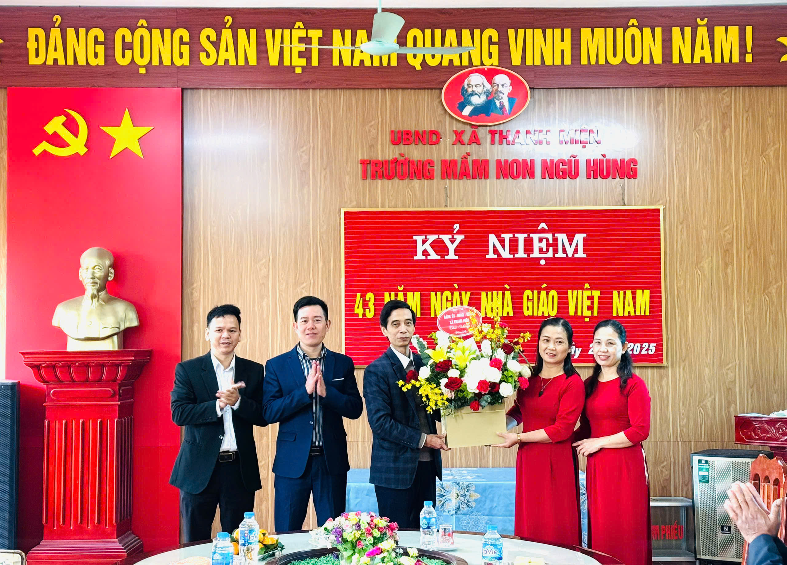Đoàn 5 do đồng chí Lê Anh Tuấn - – Phó Chủ tịch UBND xã (Trưởng đoàn) đến chúc mừng tại Trường Mầm non Ngũ Hùng, Trường Tiểu học Ngũ Hùng và Trường THCS Ngũ Hùng.