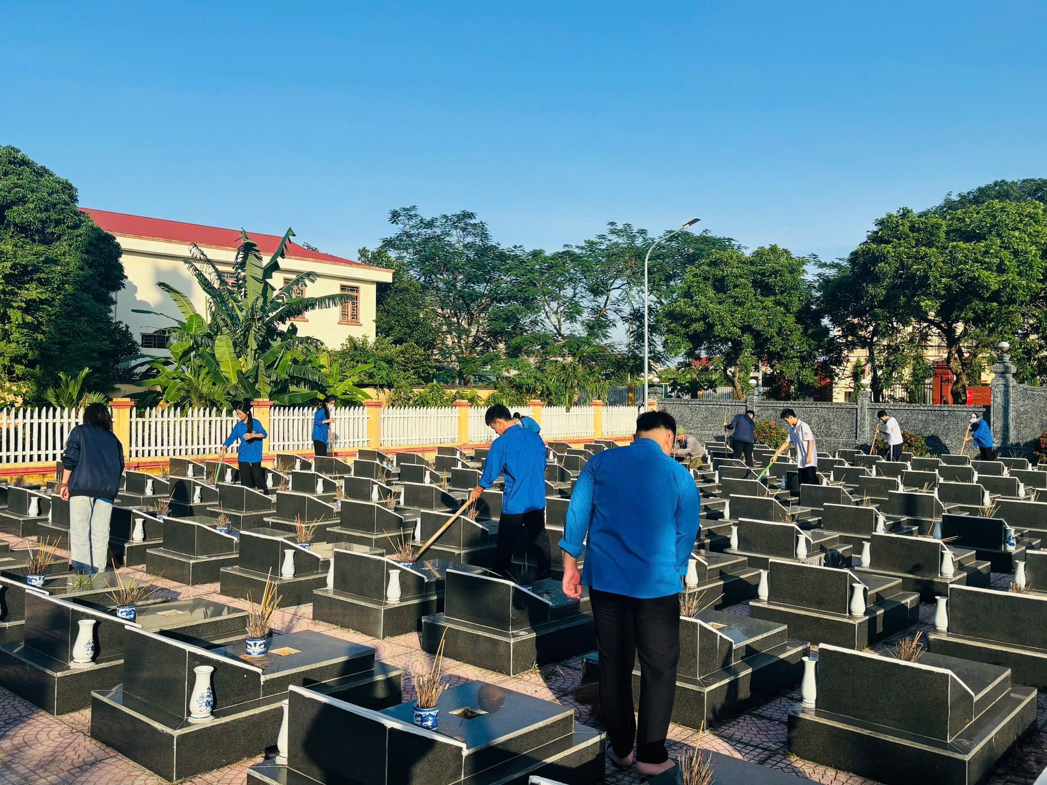 - Đoàn Thanh niên chăm sóc nghĩa trang khu vực xã Ngũ Hùng cũ.