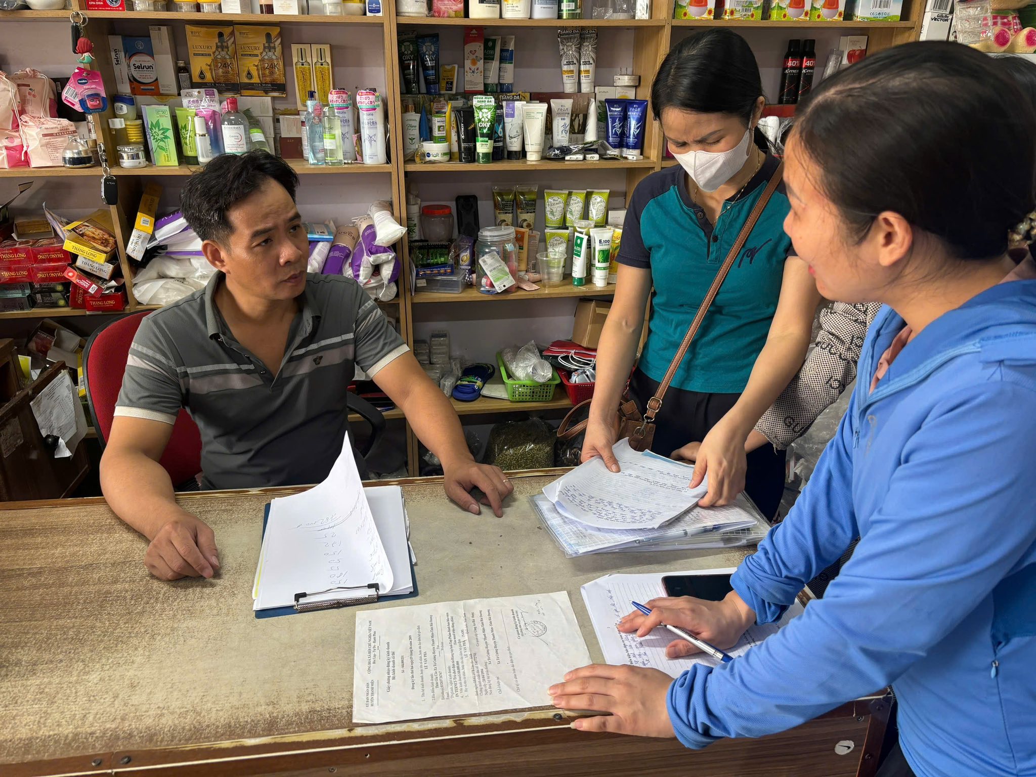 Đoàn kiểm tra của xã Thanh Miện làm việc tại một cơ sở kinh doanh bánh kẹo phục vụ Tết Trung thu. Qua thực tế, phần lớn các cơ sở, hộ kinh doanh đã chấp hành tốt các quy định, duy trì vệ sinh cửa hàng sạch sẽ, ngăn nắp, góp phần bảo đảm cung cấp những sản phẩm an toàn đến tay người tiêu dùng. Bên cạnh đó, Đoàn kiểm tra cũng kịp thời nhắc nhở, chấn chỉnh một số hạn chế nhỏ để các hộ kinh doanh khắc phục ngay.