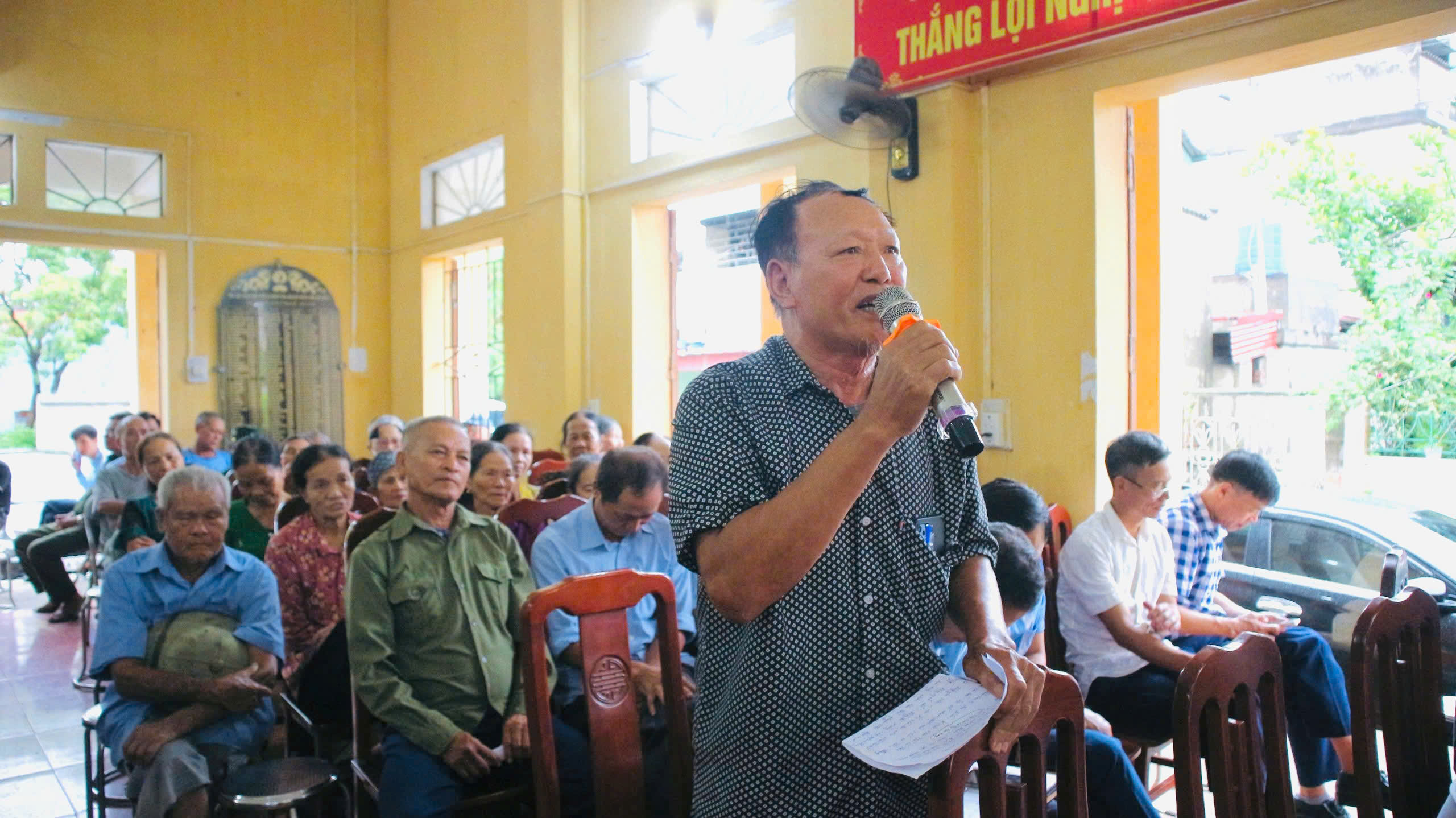 Phát biểu kết luận hội nghị, đồng chí Nguyễn Thế Tài – Bí thư Đảng uỷ, Chủ tịch HĐND xã nhấn mạnh: Hội nghị tiếp xúc, đối thoại trực tiếp với nhân dân là dịp để cấp uỷ, chính quyền lắng nghe tâm tư, nguyện vọng, phản ánh thực tế từ cơ sở. Các ý kiến hôm nay đều rất xác đáng, thể hiện tinh thần trách nhiệm, sự quan tâm của nhân dân đối với sự phát triển chung của xã nhà. Đồng chí ghi nhận, đánh giá cao tinh thần thẳng thắn, xây dựng của bà con và yêu cầu các bộ phận chuyên môn như: Phòng Kinh tế, Phòng Văn hoá, xã hội xã khẩn trương rà soát, khắc phục các tồn tại để phục vụ nhân dân được tốt hơn. Trong đó, giao Phòng Kinh tế xã chuẩn bị phương án hỗ trợ thuốc diệt chuột cho bà con nông dân trong vụ tới; kiểm tra hiện trạng, đề xuất giải pháp nâng cấp đường giao thông nội thôn, khơi thông dòng chảy, sửa chữa cống Ao Cá. Phòng Văn hoá - xã hội xã rà soát ý kiến về việc loa đài truyền thanh âm lượng còn nhỏ.