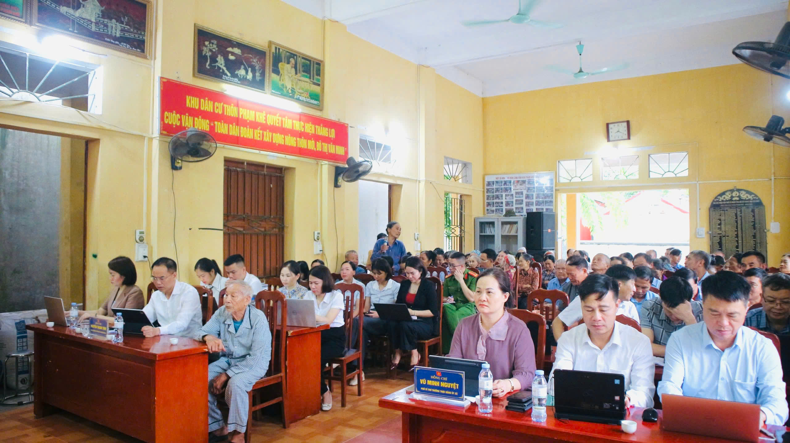 Tham dự hội nghị có đồng chí Vũ Minh Nguyệt – Phó Bí thư Thường trực Đảng uỷ; đồng chí Nguyễn Thanh Tịnh – Chủ tịch UBND xã; đại diện các ngành, đoàn thể xã và đông đảo bà con nhân dân thôn Phạm Khê.