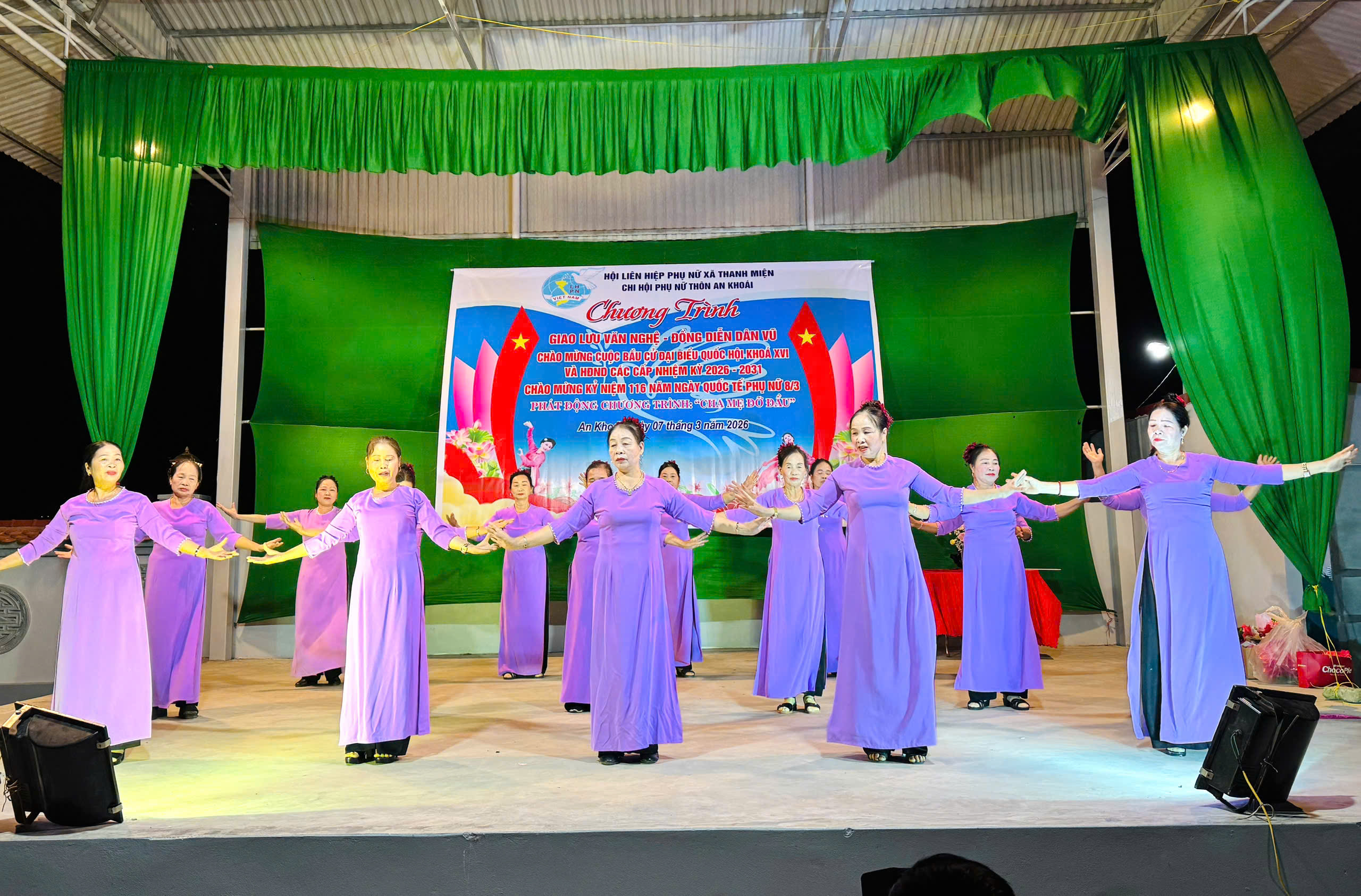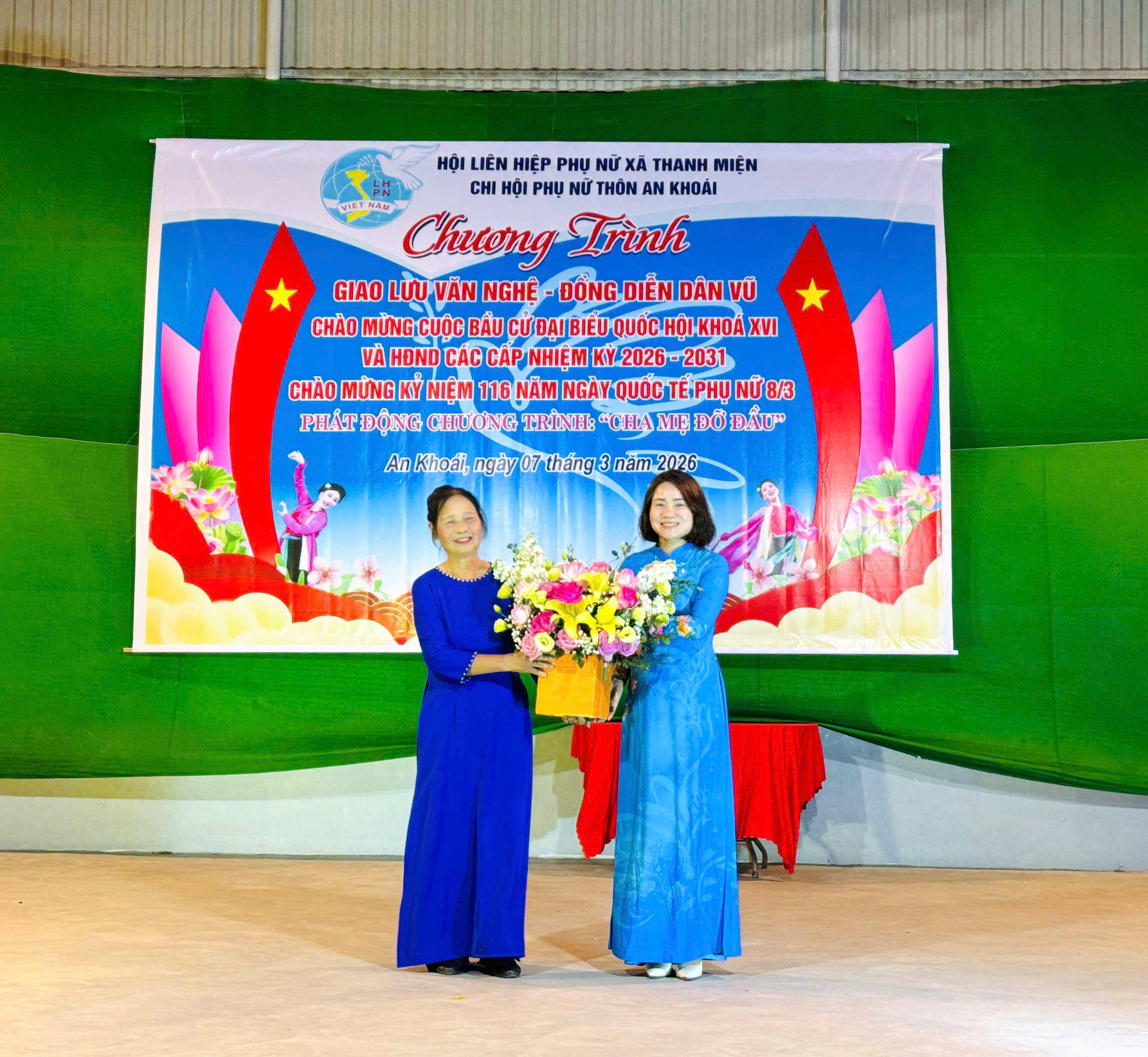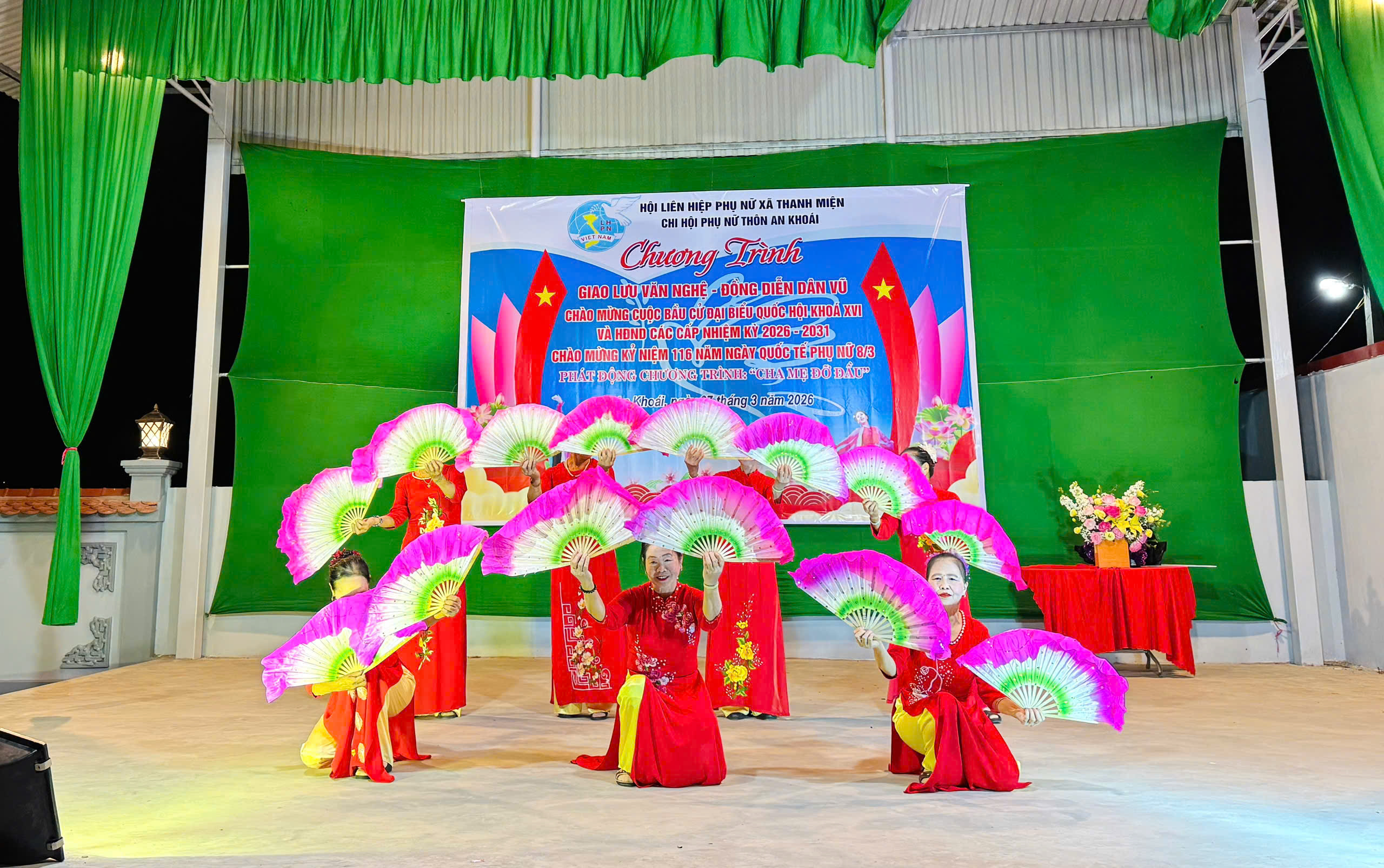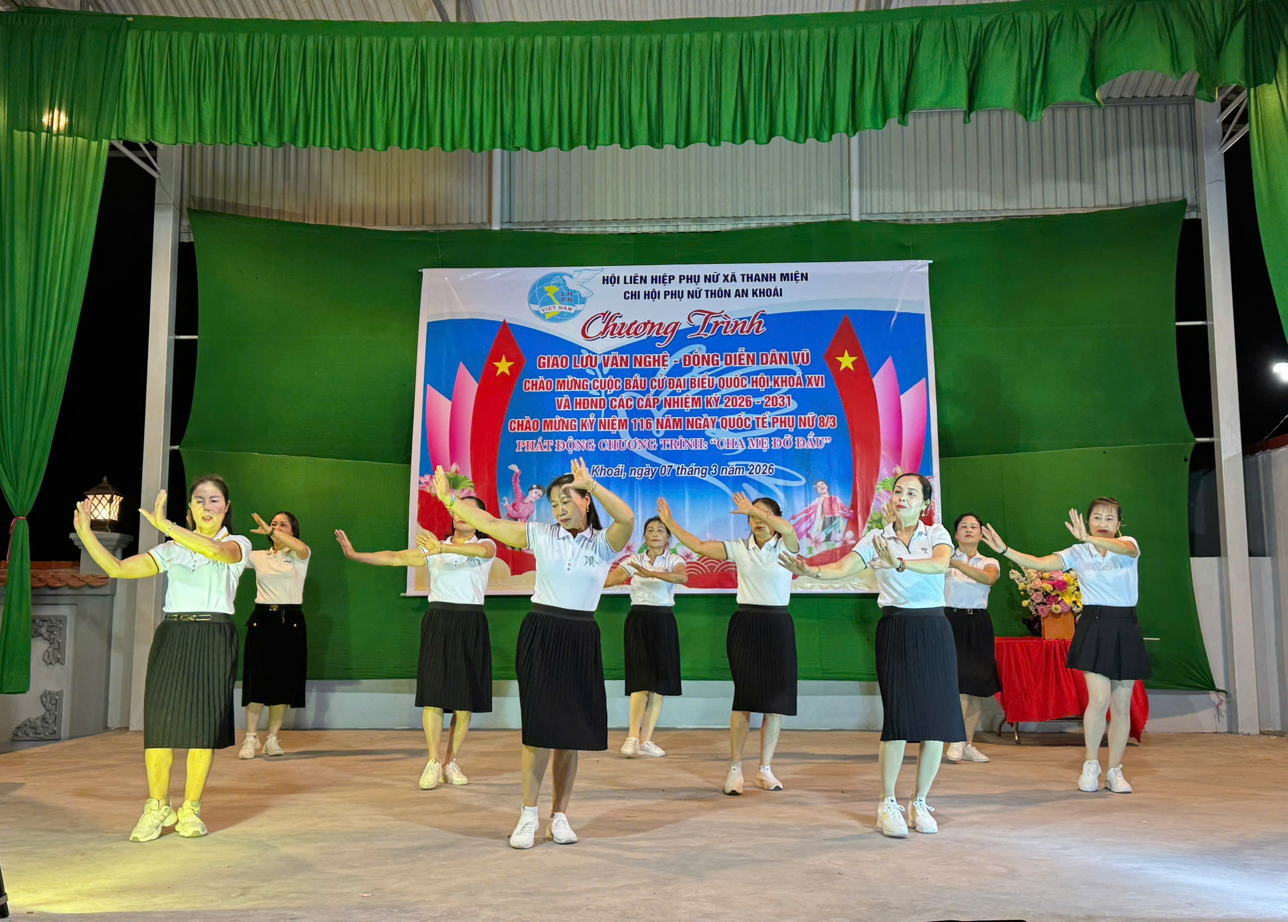 Tối ngày 7 tháng 3, tại Đình Khoai, thôn An Khoái, Hội Liên hiệp Phụ nữ xã Thanh Miện tổ chức đêm giao lưu văn nghệ chào mừng kỷ niệm 116 năm Ngày Quốc tế Phụ nữ (8/3/1910 – 8/3/2026) và 1986 năm Khởi nghĩa Hai Bà Trưng, đồng thời hướng tới cuộc bầu cử đại biểu Quốc hội khóa XVI và đại biểu Hội đồng nhân dân các cấp nhiệm kỳ 2026 – 2031.