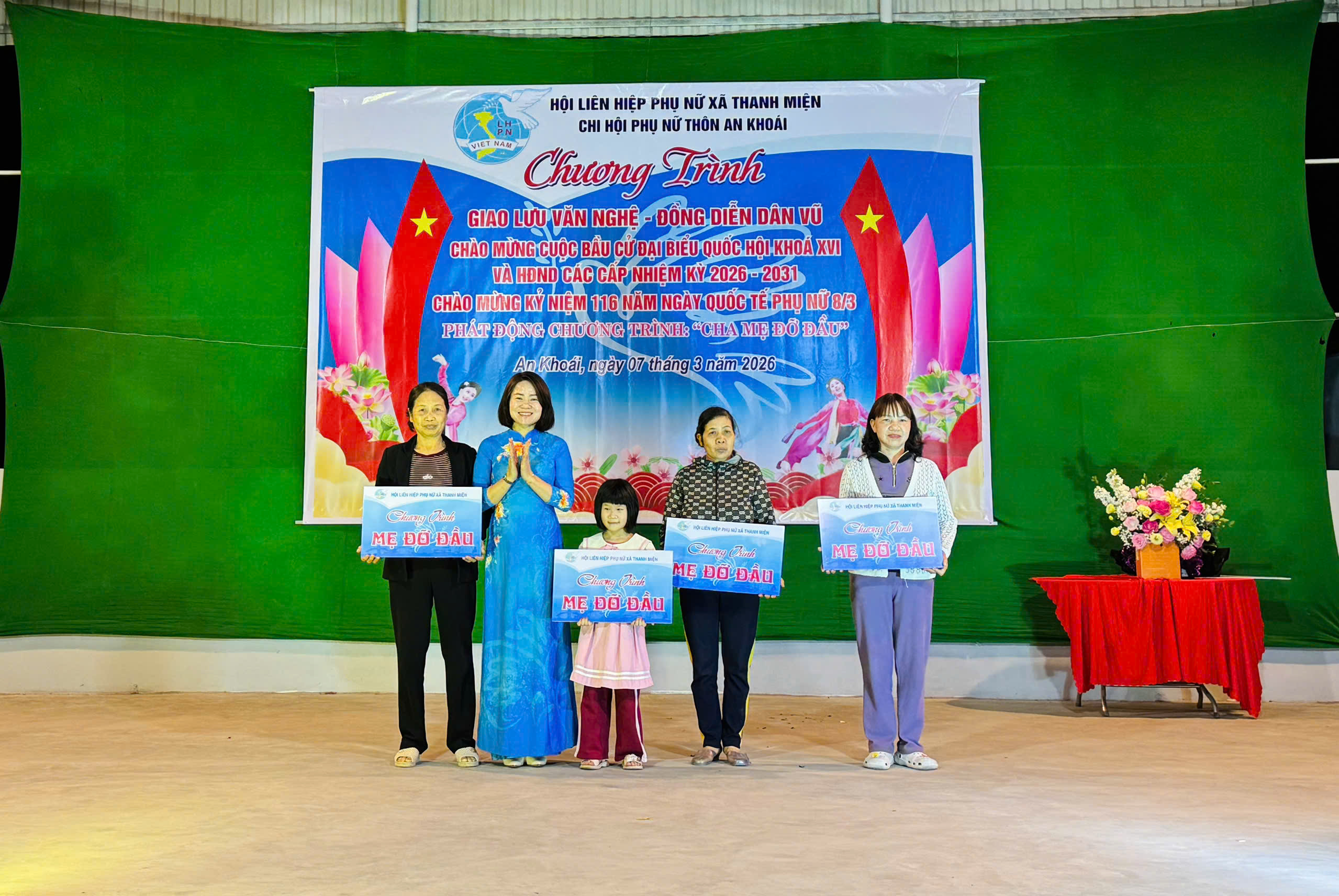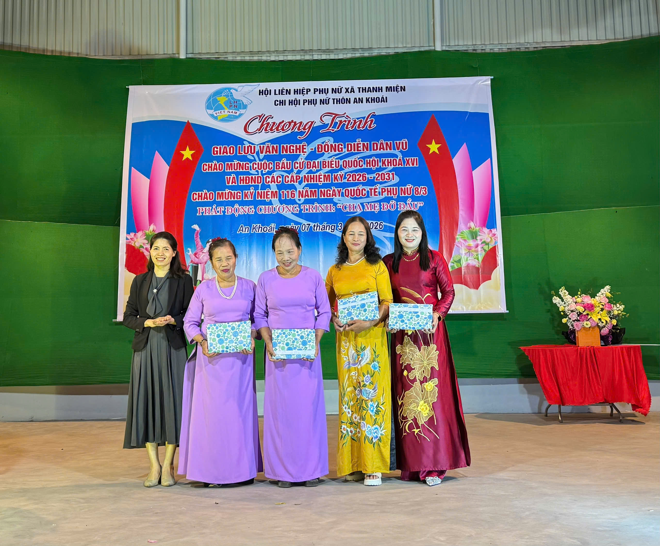 Tại chương trình, Hội Liên hiệp Phụ nữ xã đã trao kinh phí hỗ trợ chương trình “Mẹ đỡ đầu” cho các cháu có hoàn cảnh khó khăn trên địa bàn, thể hiện tinh thần sẻ chia, trách nhiệm của tổ chức Hội và hội viên phụ nữ đối với công tác chăm lo, bảo vệ trẻ em. Đồng thời, chi hội phụ nữ thôn An Khoái cũng đã tặng quà biểu dương những phụ nữ có thành tích tiêu biểu trong các cuộc thi gói bánh chưng các cấp.