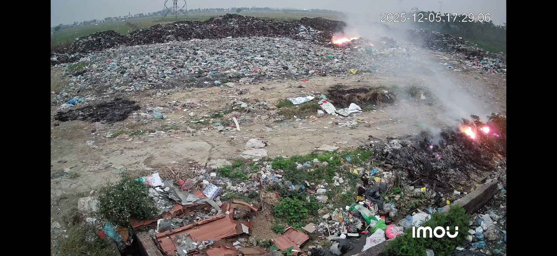 Hình ảnh đốt rác tại bãi rác thôn La Ngoại được camera ghi lại.