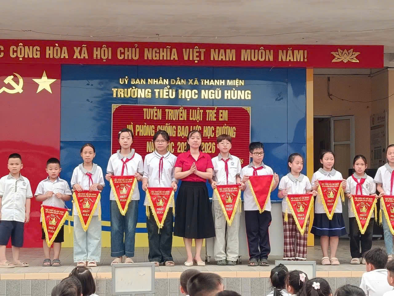 Sáng ngày 13 tháng 4 năm 2026, Liên đội Trường Tiểu học Ngũ Hùng đã tổ chức buổi tuyên truyền nhằm nâng cao nhận thức cho học sinh về quyền trẻ em và công tác phòng, chống bạo lực học đường.