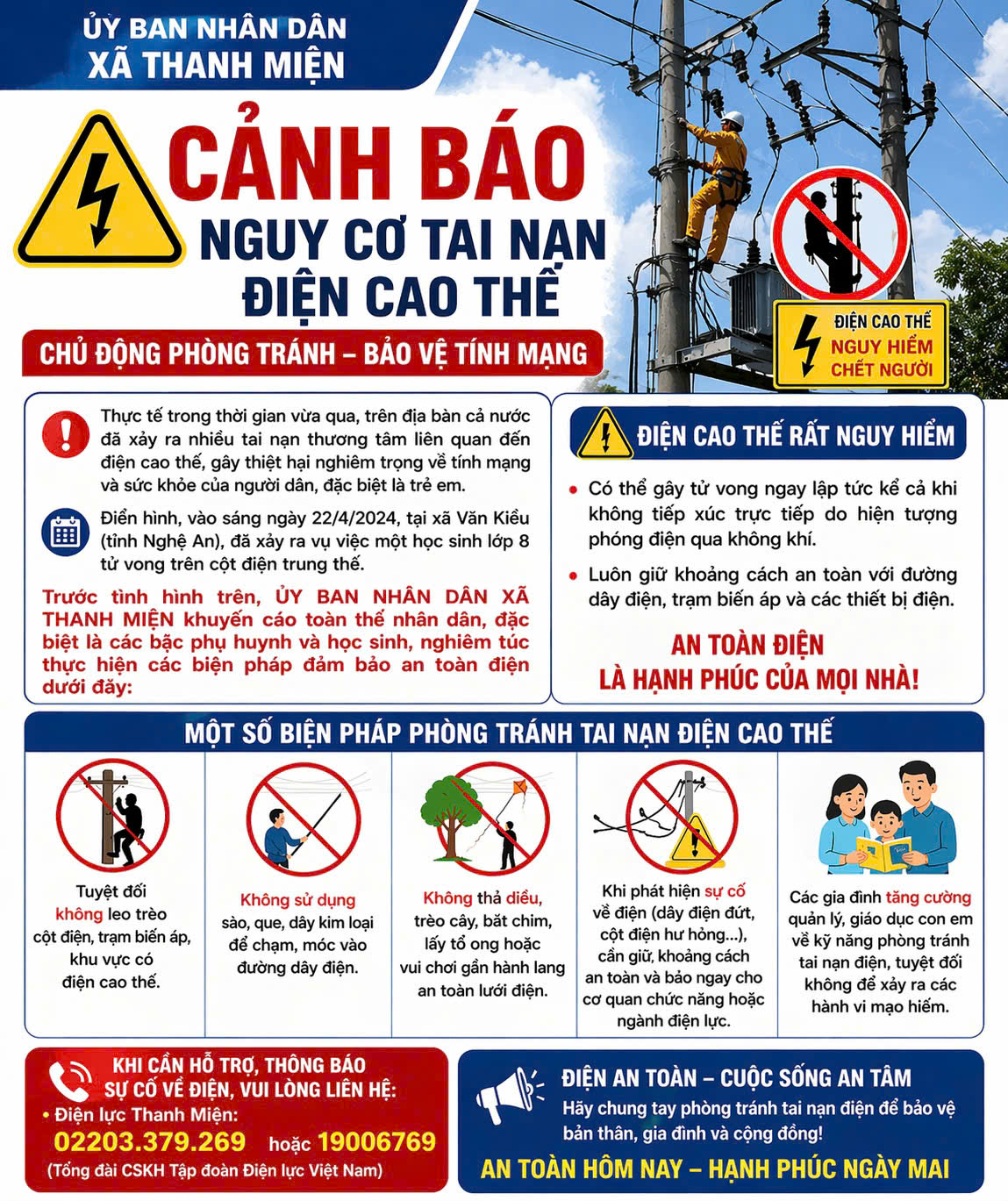 Ủy ban nhân dân xã Thanh Miện đề nghị các ban, ngành, đoàn thể, nhà trường và toàn thể nhân dân đẩy mạnh công tác tuyên truyền, nâng cao nhận thức, chủ động phòng ngừa tai nạn điện, góp phần bảo vệ an toàn tính mạng cho bản thân, gia đình và cộng đồng.