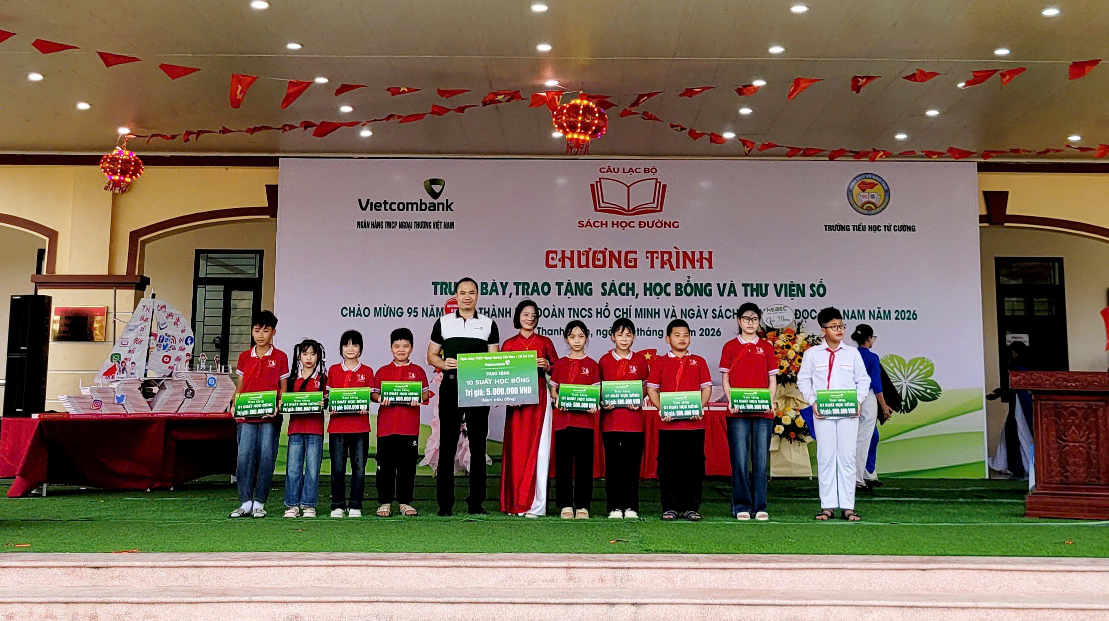 Trường Tiểu học Tứ Cường tổ chức chương trình trao tặng sách, học bổng và thư viện số